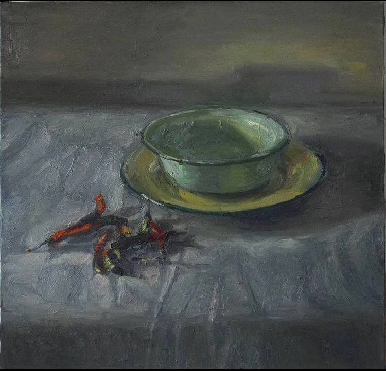 مجمودی به خوبی زندگی مدرن و کسالت بار و روزمره ما را به ما نشان میدهد، نگاه متفاوت نقاش به کنجهای فراموش شده خانه از هر شئی معنایی میسازد که تا پیش از آن وجود نداشته. معنایی از زندگی که جریان دارد. درحالی که غباری از روزمره را روی آنها پاشیده. او این غبار را کنار میزند اما نه با هدف نشاط آفرینی. او این روزمره کسالت بار را به همان گونه با همان رنگهای تیره و کدر نشان میدهد. چون قرار نیست ما را سرمست از کشفی جدید کند. ما قرار است واقعیت را همانگونه که هست ببینیم. واقعیتی که فراموش کرده بودیم، نمیدیدیم و حال جلوی چشممان گذاشتهاند که به آن خیره شویم. که دفعه بعد از کنارش ساده نگذریم. اکرم محمودی دنیای جدیدی نمیسازد او دنیای پیرامون مارا عادت زدایی میکند. ما شئی جدید نمیبینیم ما همان اشیای آشنای زندگی خودمان را میبینیم که حالا به طرزی غریب خود را به ما نشان میدهند و ما را در میانه حسی از آشنایی و نا آشنایی رها میکنند.
