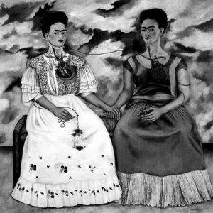 فریدا در اندک زمانی پس از جدایی اش از دیگو ریورا کار نقاشی این خودنگاره را به اتمام رساند که در آن دو شخصیت متفاوت از او تصویر شده اند. فریدا در خاطراتش می نویسد که این نقاشی ریشه در خاطره او از یک دوست خیالی در دوران کودکی اش دارد. اما بعدها اعتراف کرد که این نقاشی احساساتی را می نماید که پیرامون جدایی و بحران زندگی زناشویی اش در او شکل گرفت. در سمت راست فریدا در لباس مکزیکی است، همان شخصیتی که مورد عشق و احترام دیگو بود. در دستش تعویذی با تصویر دیگو در دوران کودکی است. در سمت چپ، فریدا در لباس سفید عروس که ظاهری اروپایی تر دارد، همان که دیگو او را ترک کرد. قلب دو زن در این تصویر نمایان است، ابزاری که فریدا اغلب از آن برای نشان دادن درد و غمش استفاده می کرد. قلب فریدای ترک شده شکسته در حالیکه قبل فریدای دیگر کامل است. از تعوذی که در دستان فریدا قرار دارد رگی بیرون آمده که از قلب هر دو زن عبور کرده و در نهایت توسط قیچی جراحی در دستان فریدای ترک شده بریده شده است. فریدا مایوسانه در تلاش برای بند آوردن جریان خونی است که از دیگو می آید، با این حال خون در حال چکیدن بر روی لباسش است. فریدا درخطر مرگ است. آسمان طوفانی پشت سرش از ابرهای متلاطم پر شده که اغتشاش درونی او را نشان می دهد. فریدا دستان خود را گرفته، که تنها همراه و حامی اش است.